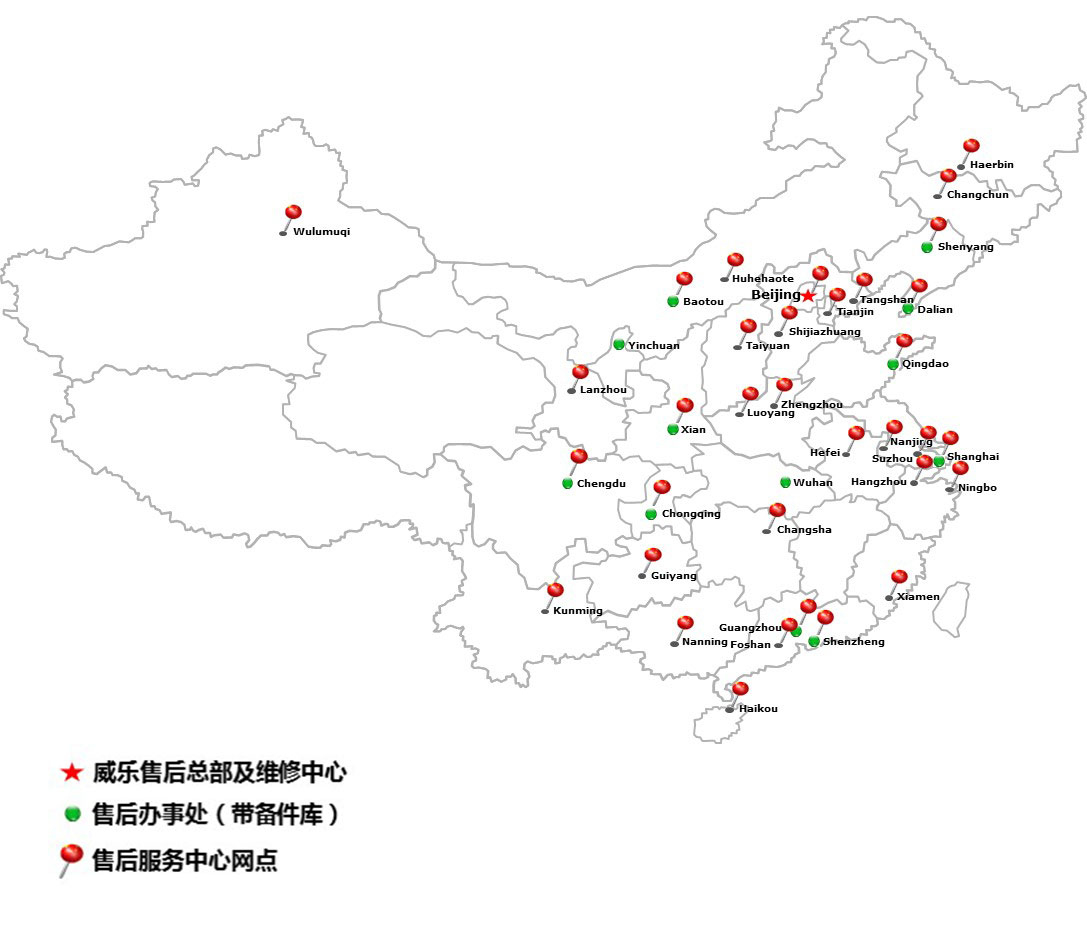 中国范围内我们拥有14家服务办事处,61家服务中心, 9个备件中心,分别设立在各区域重点城市。在全国范围内共有200多名技术精湛的现场服务和维护保养工程师。确保您的设备在任何情况下正常、高效地运行。